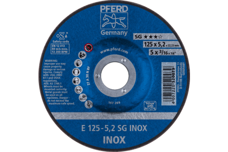 Informații tehnice : Disc abraziv E 125x5,2x22,23 mm Performance Line SG INOX pentru oțel inoxidabil |